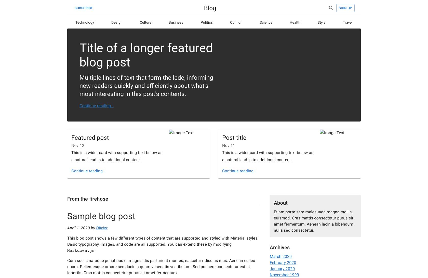 A polished blog page layout. Markdown support is courtesy of markdown-to-jsx.