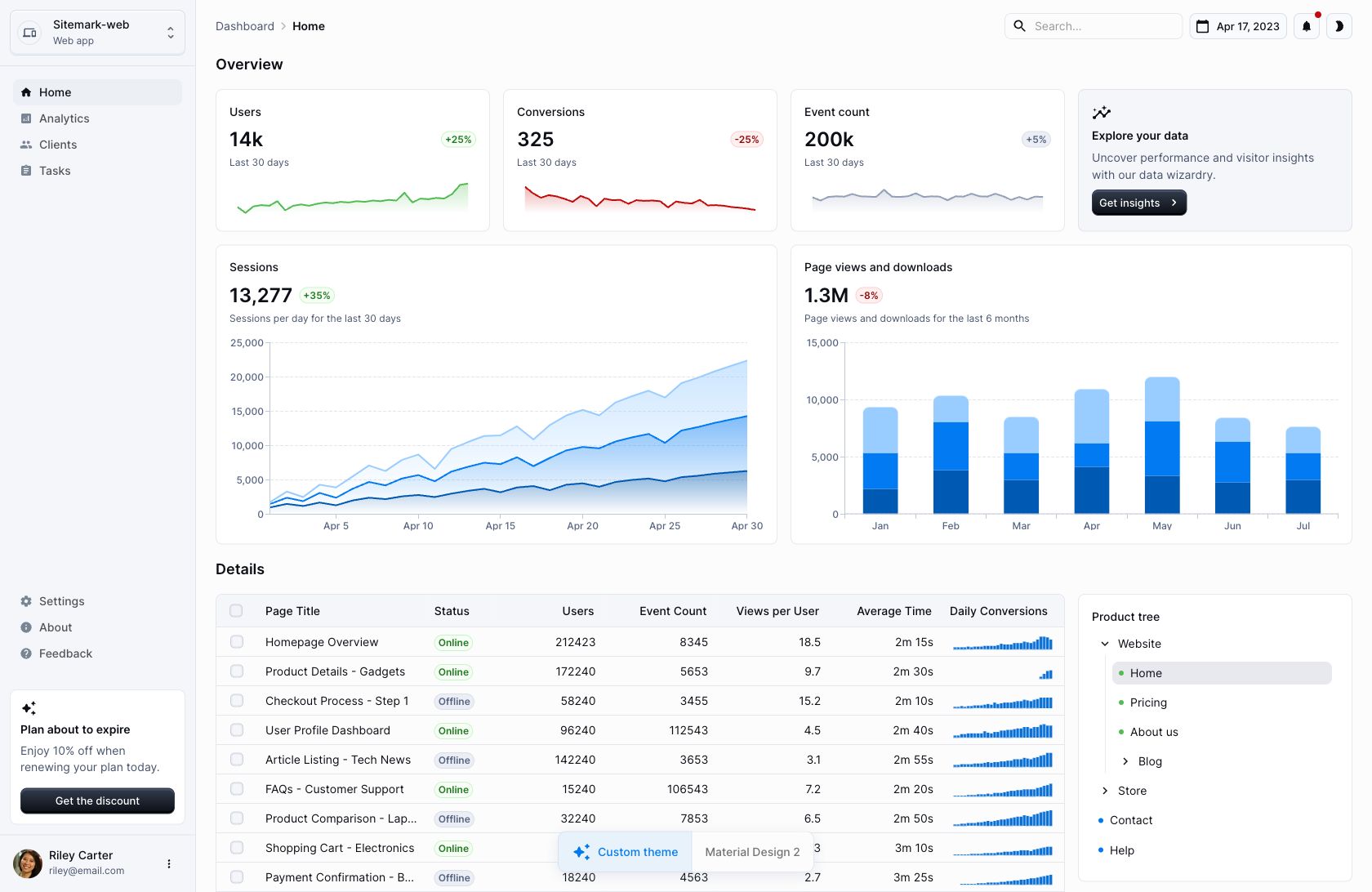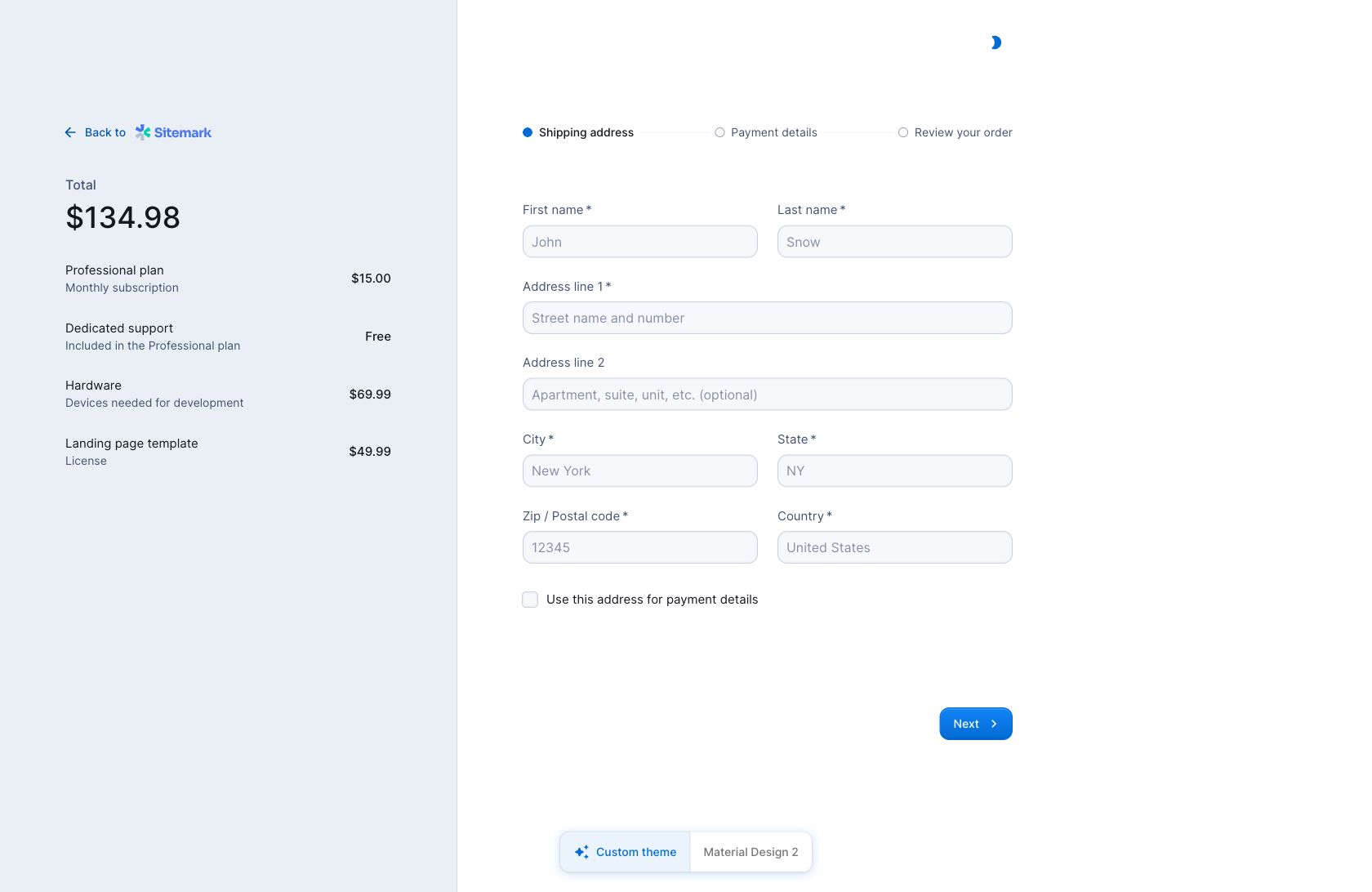 Our curated collection of free Material UI templates includes dashboards, landing pages, sign-in and sign-up pages, a blog, a checkout flow, and more. They can be combined with one of the example projects to form a complete starter.